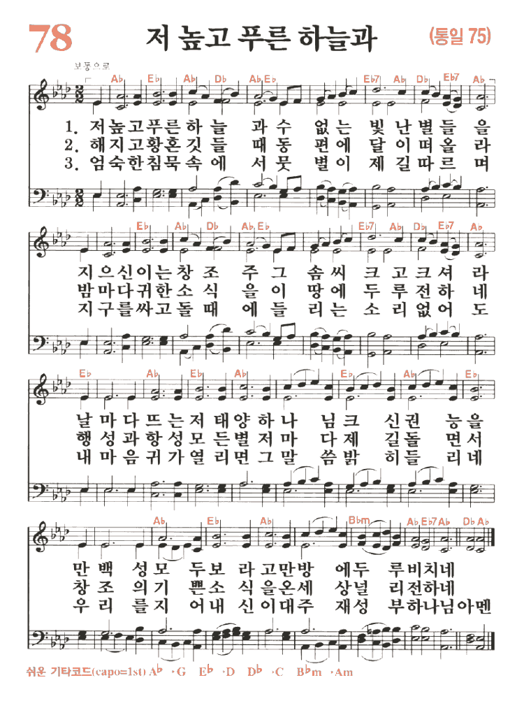 (1)저 높고 푸른 하늘과 수 없는 빛난 별들을